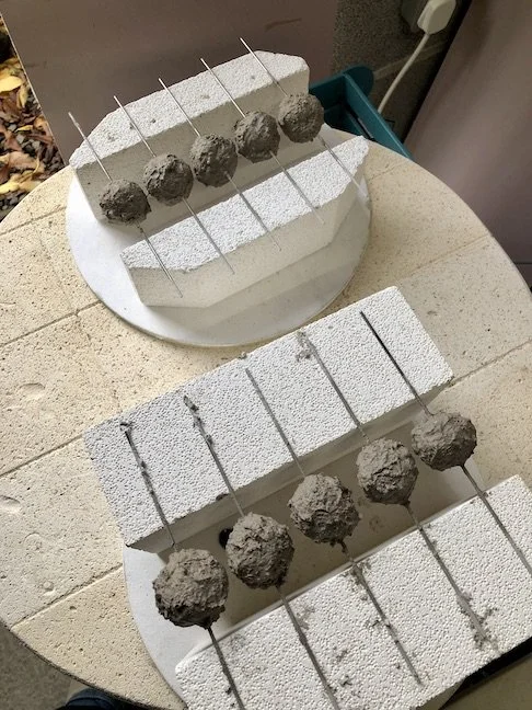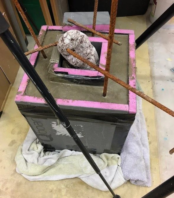 Materials: cement, steel grid, ceramic paste, copper, aluminium, rulers, and callipers